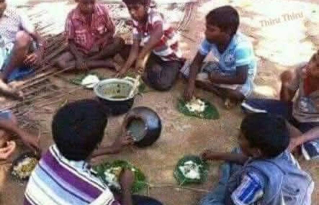 ஞாயத்துகெழமை பள்ளிக்கொடத்துக்கு லீவு அன்னிக்கி. மேலவயக்காட்டு மேட்டுல கூட்டாஞ்சோறு சமைக்க சனிக்கெழமை டியாண்டியாடோய் வெளையாடும் போது முடிவாச்சி. அதுமாதிரி முடிவெடுக்குறப்ப பொறுப்புகளை பிரிச்சிக் அவனுகளாவே எடுத்துக்குவானுக. முருகன் அரிசி கொண்டாரனும் அரிசின்னா அரைப்படி புழுங்க அரிசி எடுத்தாந்துரனும். குட்டபொசுக்கி முளகாகொண்டாரனும். ஏன்னா அவன் வீட்டுல அது இருந்தாலே அதிகம். வேற ஒன்னும் பெயராது. மொத்தமா வாங்கிவைக்கிறபழக்கம் இல்ல.