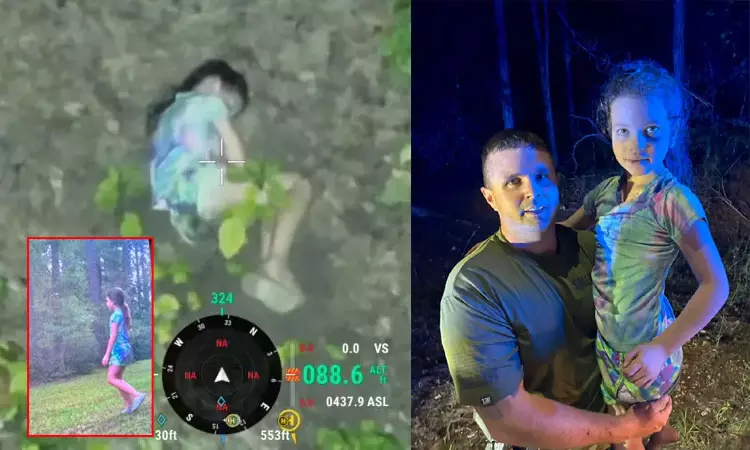 அமெரிக்காவின் லூசியானா மாகாணத்தில் பெய்டன் செயின்டிக்னன் (10) என்ற சிறுமிக்கு தூக்கத்தில் நடக்கும் சோம்னாம்புலிசம் என்ற வியாதி உள்ளது. சம்பவத்தன்று இரவில் சிறுமி, தூக்கத்திலேயே நடந்து காட்டு பகுதிக்குள் சென்றிருக்கிறாள். இதையடுத்து, போலீசார் மற்றும் நூற்றுக்கணக்கான தன்னார்வலர்கள் சிறுமியை தேடி அழைந்த நிலையில், ட்ரோன் மூலம் காட்டில் படுத்து உறங்கிக் கொண்டிருந்த சிறுமி கண்டறியப்பட்டு மீட்கப்பட்டாள்.