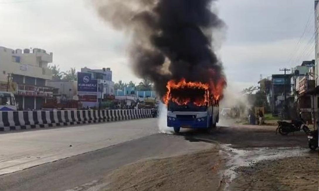 கேரள மாநிலம் கொச்சி அருகே தொடுபுழாவிலிருந்து எர்ணாகுளம் நோக்கி சென்ற அரசு ஏசி பேருந்து, திடீரென தீப்பிடித்து எரிந்தது. சில நிமிடங்களில் தீ மளமளவெனப் பரவி பேருந்து முழுவதும் பற்றி எரிந்துள்ளது. இதையடுத்து உடனடியாக பேருந்திலிருந்த பயணிகள் அனைவரும் கீழே இறங்கியதால் உயிர்ச்சேதம் தவிர்க்கப்பட்டது.