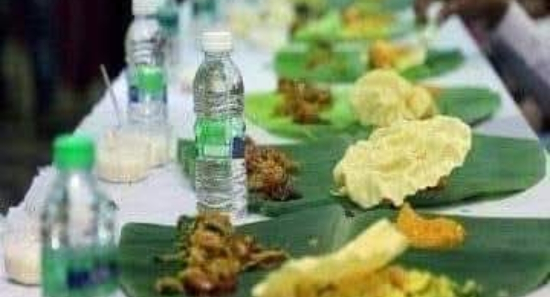வரிசைகள் காலியாக இருந்தது. கேட்டரிங் பணியாளர் ஒருவர் இலை போட்டார்.