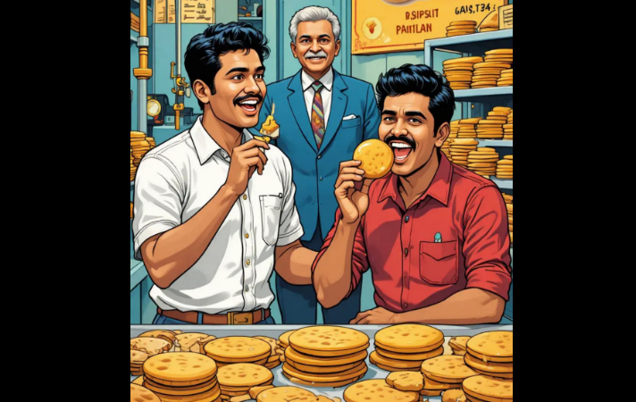 அப்புறம் நாலைந்து நாட்களாக யோசித்தார். பிஸ்கட்டு தயார் செய்பவர் உள்ளே ஒரு போட்டி வைத்தால் எப்படி இருக்கும். யாரு நல்லசுவையாக சூப்பரா பிஸ்கட் தயார் செய்கிறார்களோ அவங்களுக்கு இரண்டு லட்சம் ரூபா பரிசு கொடுக்கலாம்.