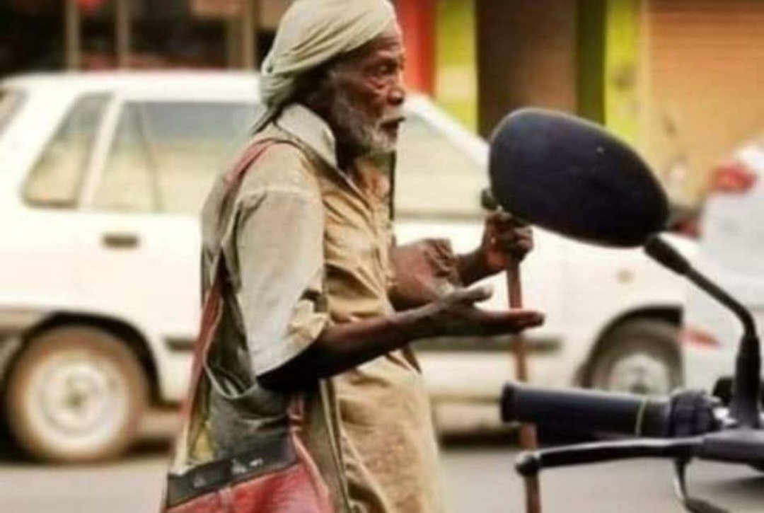 அங்கே அவர் மனைவி பிச்சை எடுத்துக்கொண்டு இருக்க. அவர் கையில் மீதி ஜூஸை கொடுத்து குடிக்க சொல்கிறார். “ஏது?” என்று அந்த அம்மா கேட்க… வாங்கிதந்தவரை நோக்கி விரல் நீட்டுகிறார்.