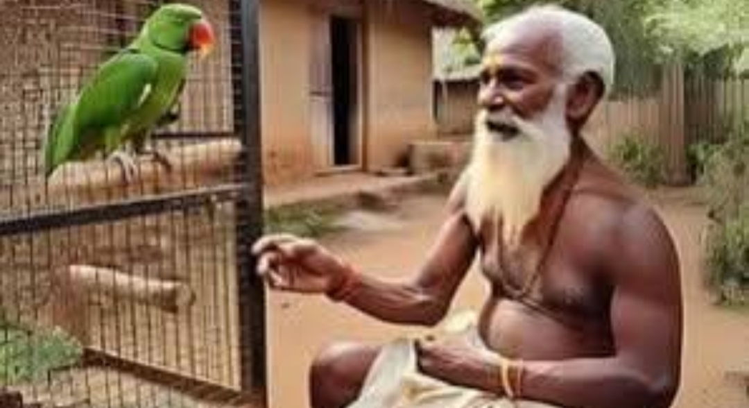 ஒரு பெரியவர் தவம் செய்து கொண்டிருக்கும்போது அவருக்கு அருகில் ஒரு கிளி இருந்துகொண்டு அவரை கவனித்து “நீங்கள் ஞானி” என்று திரும்ப திரும்ப கூறிக்கொண்டே இருந்தது.