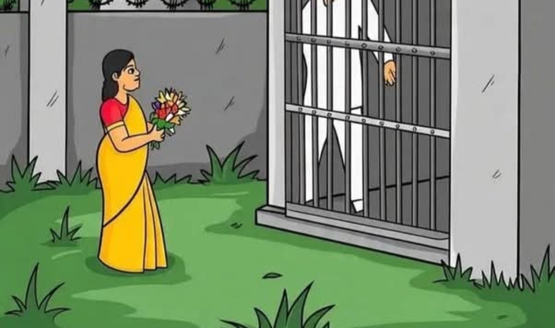 நீண்ட நாட்களாக சிறையில் இருக்கும் கணவனை பார்த்து பேசிவிட்டு திரும்பிய மனைவி கடும் கோபத்துடன் சிறை அதிகாரிகள் இருந்த அறைக்கு சென்றாள்.