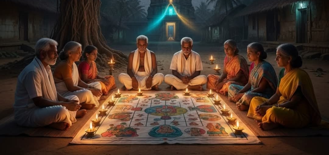 பரமபதம் விளையாடப்படுகிறது.