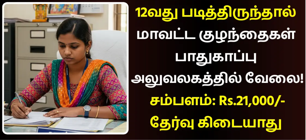 மாவட்ட குழந்தைகள் பாதுகாப்பு அலுவலகத்தில் காலியாக உள்ள கீழ்க்கண்ட பணியிடங்களை நிரப்ப தகுதியான நபர்களிடமிருந்து விண்ணப்பங்கள் வரவேற்கப்படுகின்றன.